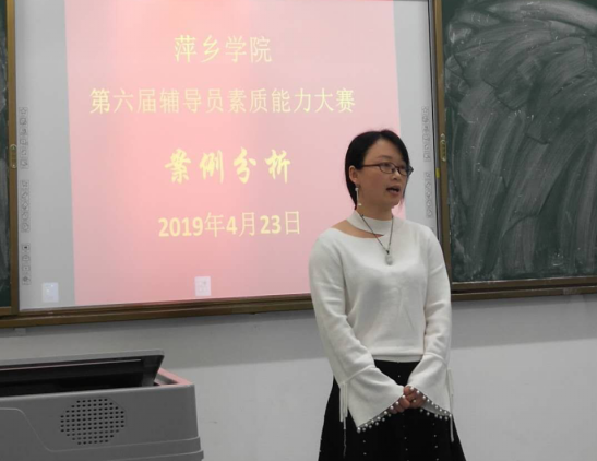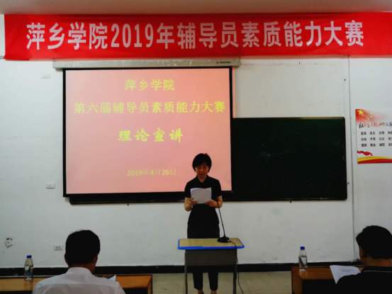 2019年4月26日,“萍乡学院第六届辅导员素质能力大赛”在英华楼3112教室圆满落幕。经过两个阶段、四个环节的紧张角逐,最终材料与化学工程学院辅导员欧阳甜甜获得大赛一等奖,政法学院辅导员陈尧嘉、机械电子工程学院辅导员杨芳、初等教育学院辅导员王欢获得大赛二等奖,初等教育学院辅导员欧阳群,商学院辅导员曾竹、初等教育学院辅导员张娜,艺术学院辅导员李世友,信息与计算机学院辅导员吴陈舒,文学院学工科长黄如光获得大赛三等奖。初等教育学院、政法学院获得大赛组织奖。