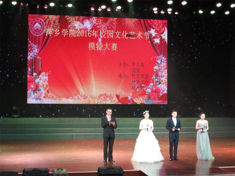 2016年5月20日晚上7点,萍乡学院第四届校园文化艺术节模特专场在音乐厅拉开帷幕,担任此次比赛的评委有付红玲老师、姚雅琼老师、葛孜老师。出席本次模特专场的嘉宾有学工处处长叶国许,校团委书记刘德平老师、校艺术团陈光明老师、校学生会指导老师何继辉和五大组织,四大媒体负责人以及各学院学生会主席。观众井然有序地入场就座,现场气氛活跃,座无虚席。