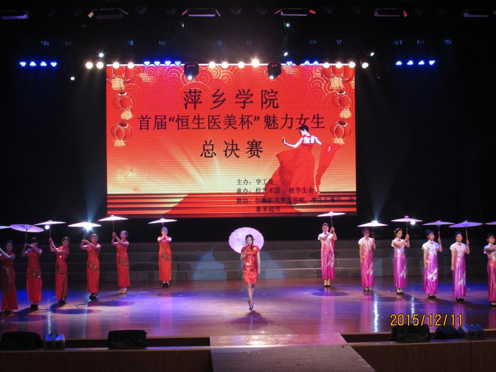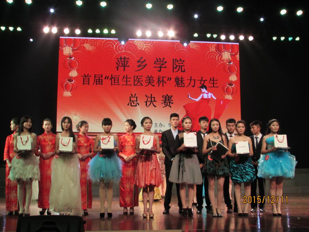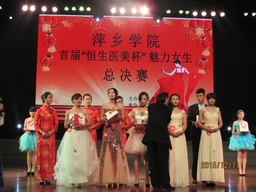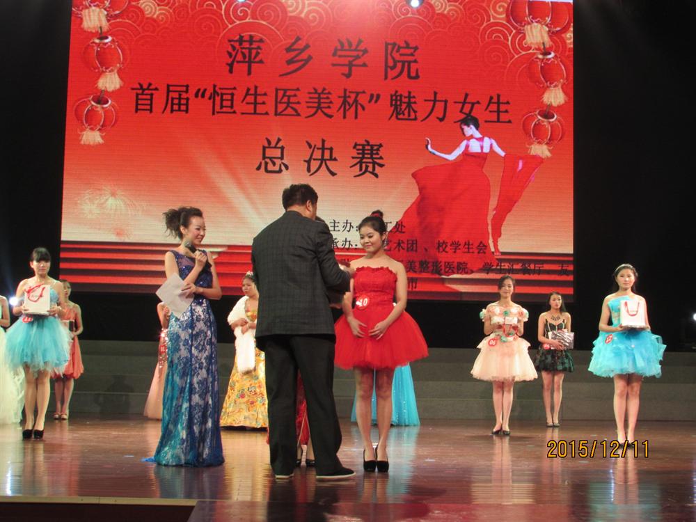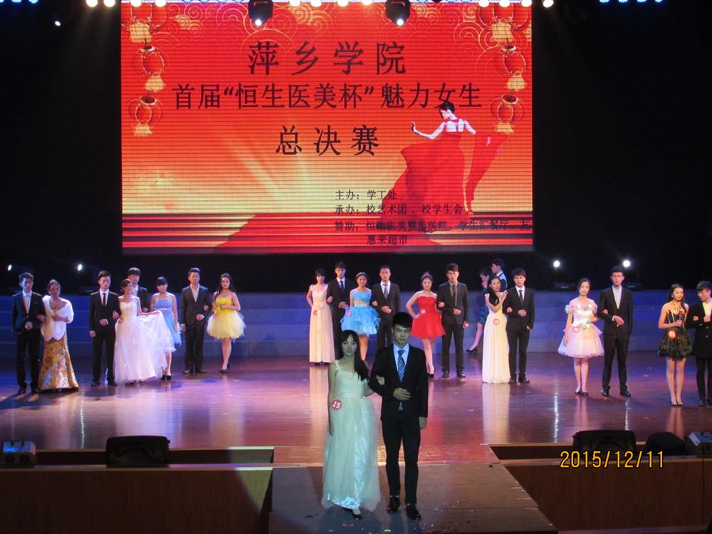 2015年12月11日19:00,由萍乡学院学工处主办,校学生会、校艺术团承办的萍乡学院首届“恒生医美杯”魅力女生决赛于音乐厅隆重拉开序幕,党委委员、副院长郭伟莅临晚会现场。担任此次大赛的评委有萍乡学院学工处处长叶国许、恒生医美整形的朱倩薇老师、校艺术团老师陈光明、初等教育学院老师葛孜。各组织媒体代表以及各二级学院学生代表也出席了本次大赛现场。