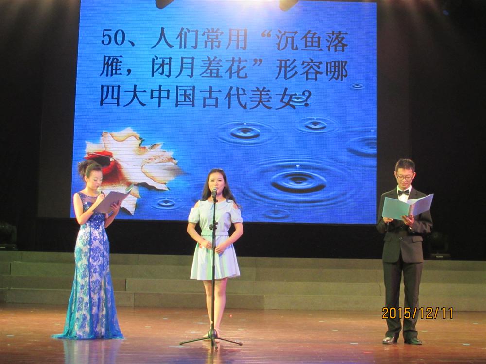魅力不只在外表,更在于内心,才华的美更令人着迷。接下来便是决赛第二项――“才华馥比仙”,每位选手抽签回答四道题目进行回答,在对选手们知识方面的考验中,不仅有古代文化、当下时事,还有校园中的一些值得留意的文化。在紧张的答题环节中,全场的气氛不知不觉中进入了高潮,一个个有趣的问题也吸引了在场观众的兴趣,让全场观众为之沸腾。