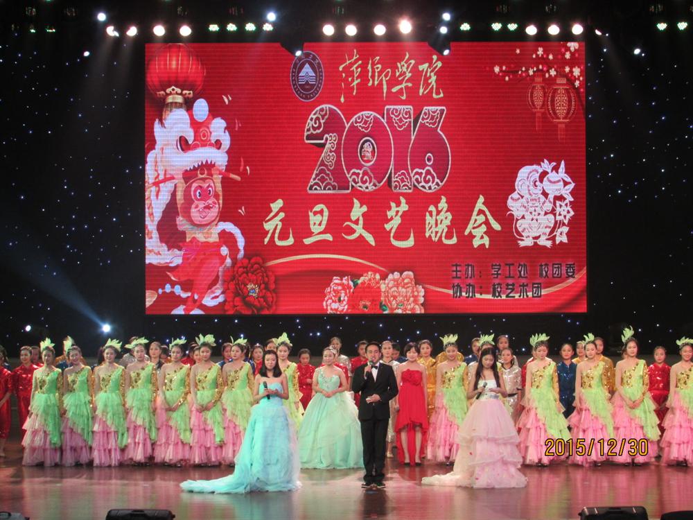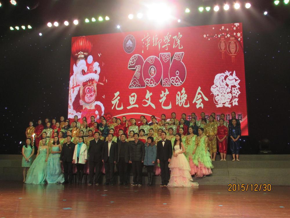 2015年12月30 日晚上7点,由学工处、校团委主办,校艺术团、校学生会协办的萍乡学院2016年元旦晚会在音乐厅隆重开幕。出席本次晚会的领导有萍乡学院院长范小林,副院长郭伟、邱建丁,校领导田常红、刘卫林,组织部部长陈永秀,宣传统战部长陈永国,以及各学校的中层干部、师生代表前来观看,全场座无虚席。