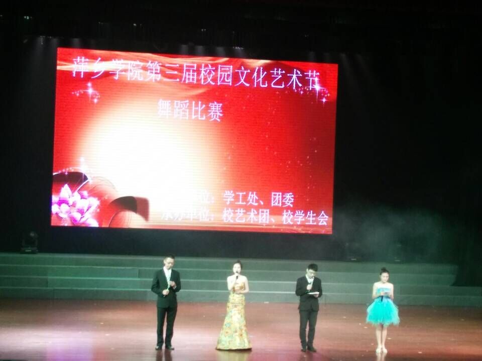 2015年5月24号晚上7点,萍乡学院第三届校园文化艺术节在音乐厅拉开帷幕,莅临本次舞蹈专场嘉宾有萍乡学院党委委员组织部部长陈永秀老师,担任此次的评委有艺术系付红玲老师,萍乡学院艺术团陈光明老师,教育科学系喻欢老师,教育科学系二部葛孜老师,萍矿艺术团邓圣林老师。五大组织四大媒体负责人,各系(部)主席以及各系(部)学生代表观看了此次比赛。