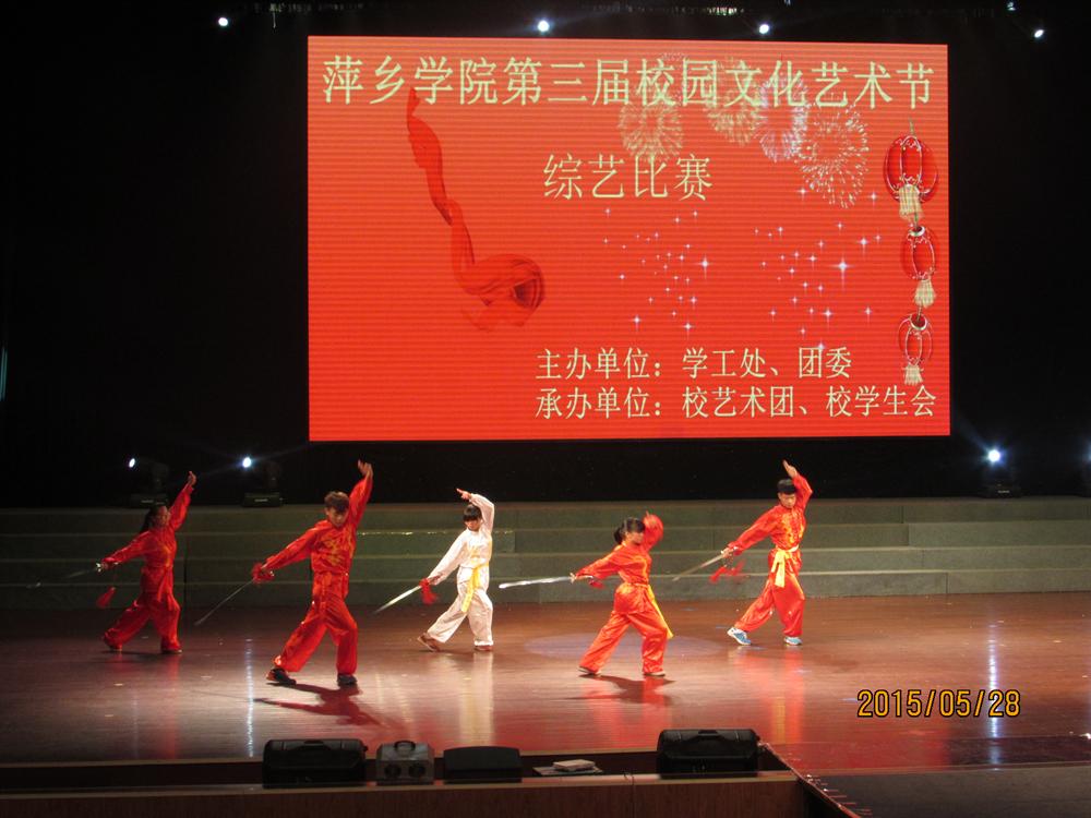 2015年5月28日晚上7:00,由萍乡学院学工处、校团委主办,校艺术团、校学生会承办的萍乡学院第三届校园文化艺术节综艺专场在音乐厅隆重拉开帷幕。担任此次大赛的评委有萍乡学院学工处副处长丁勇,艺术系付红玲老师、教育科学系颜玉沁老师、教育科学系二部葛孜老师。各系(部)主席以及各系(部)学生代表也出席观看了此次大赛。
