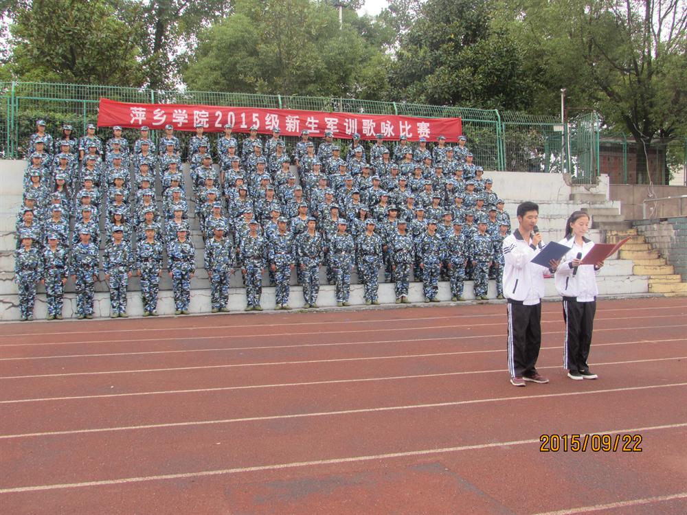 2015年9月22日,由萍乡学院学工处主办、萍乡学院校学生会承办的2015级新生军训歌咏比赛在田径场顺利进行。来自萍乡学院各个二级学院的共计25个排参加了比赛。比赛评委由各个二级学院的党总支副书记担任。