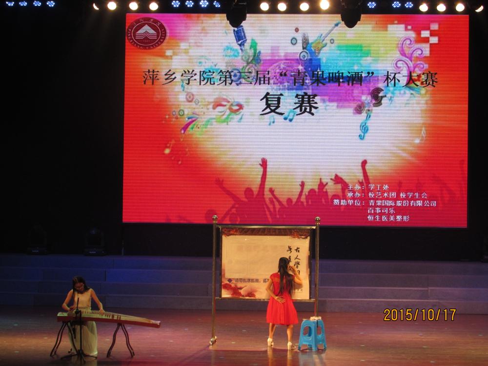 2015年10月17日上午8:00,由萍乡学院学工处主办,校艺术团、校学生会承办的萍乡学院第三届校园之星复赛在音乐厅隆重开幕。担任此次大赛的评委有萍乡学院学工处副处长丁勇、艺术团陈光明老师以及艺术系付红玲老师。各学院学生代表也出席观看了此次大赛。