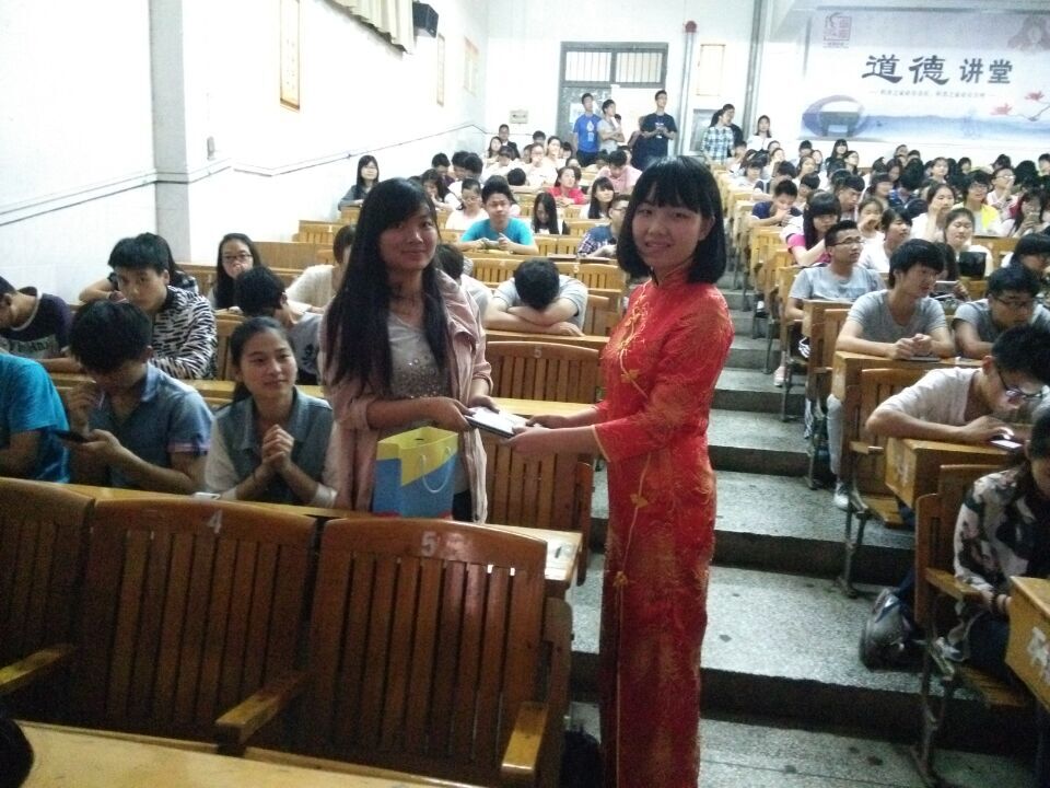 在决赛中还穿插了互动环节,校学生会准备了12道关于五四运动的题目,每一位选手演讲完后,由选手选择题目序号,再请在场的同学们来举手抢答,答对者即送印有萍乡学院字号的笔记本。此环节将会场气氛推上高潮,大家热情高涨,不亦乐乎。